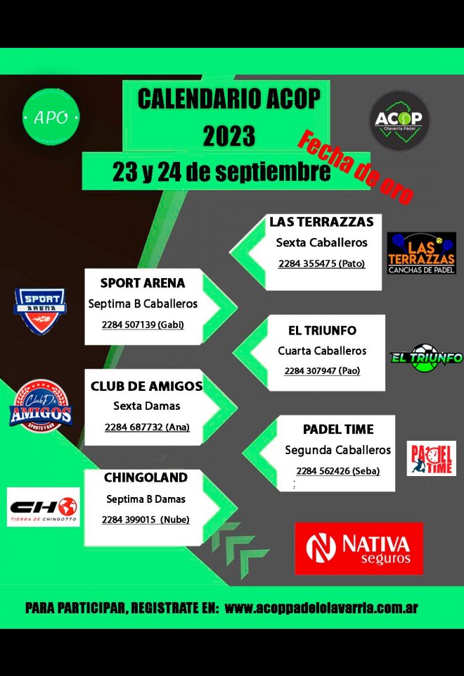 »» Evento: ACOP FECHA 11 (SUMA 50 % MAS ) »» Localidad: Olavarría »» Fechas: 22/09/2023 al 24/09/2023