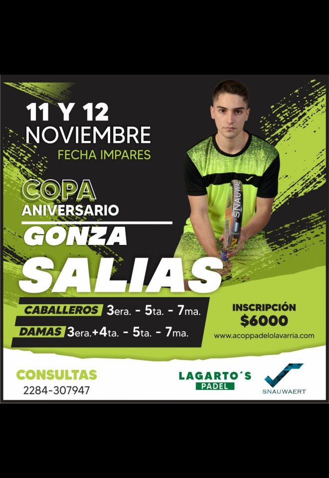 »» Evento: COPA ANIVERSARIO GONZA SALIAS »» Localidad: Olavarría »» Fechas: 10/11/2023 al 12/11/2023