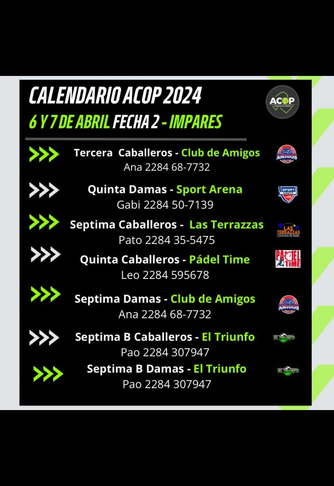 »» Evento: ACOP FECHA 3 IMPARES »» Localidad: Olavarría »» Fechas: 05/04/2024 al 07/04/2024