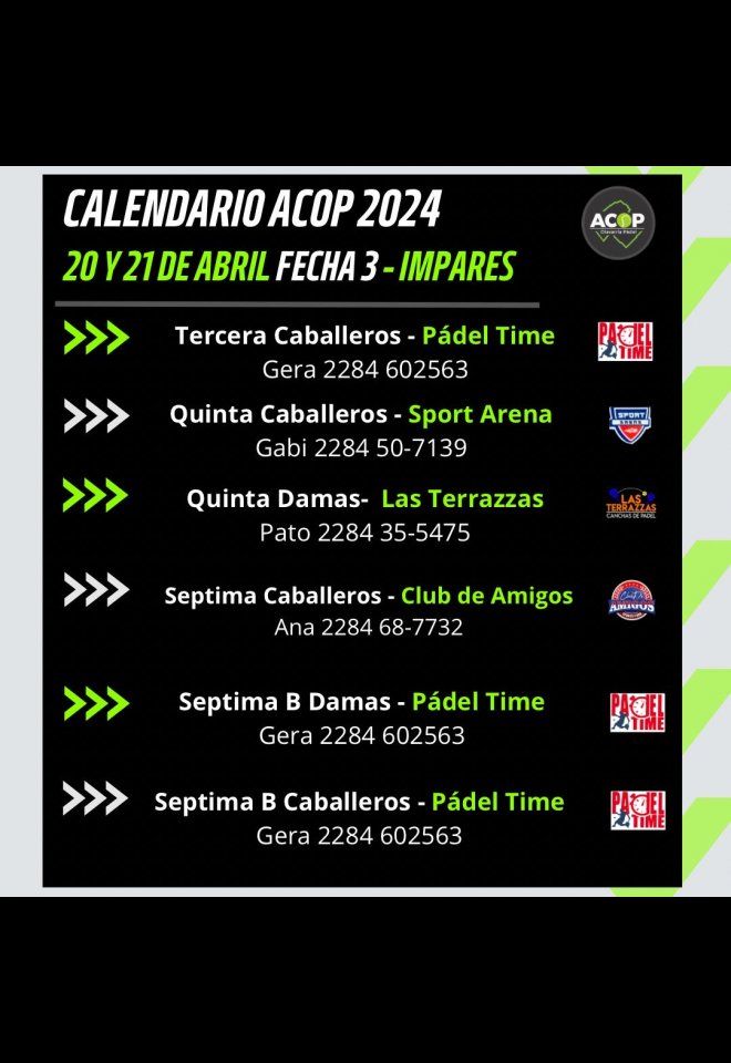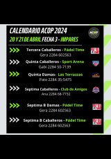 »» Evento: ACOP FECHA 4 IMPARES »» Localidad: Olavarría »» Fechas: 19/04/2024 al 21/04/2024