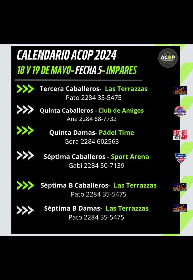 »» Evento: ACOP FECHA 5 IMPARES »» Localidad: Olavarría »» Fechas: 17/05/2024 al 19/05/2024