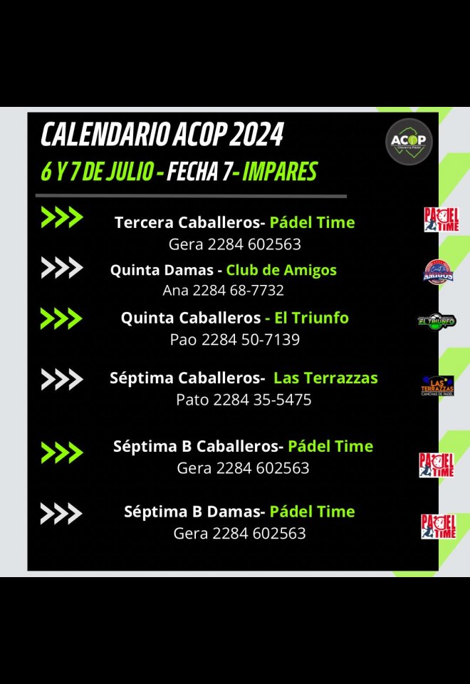 »» Evento: ACOP 7MA FECHA IMPARES »» Localidad: Olavarría »» Fechas: 05/07/2024 al 19/07/2024