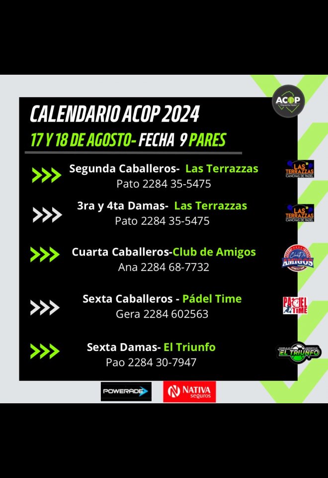 »» Evento: ACOP FECHA 9 PARES »» Localidad: Olavarría »» Fechas: 16/08/2024 al 18/08/2024