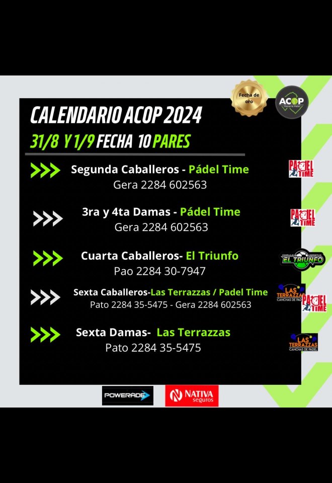 »» Evento: ACOP FECHA 10 PARES ORO »» Localidad: Olavarría »» Fechas: 30/08/2024 al 01/09/2024