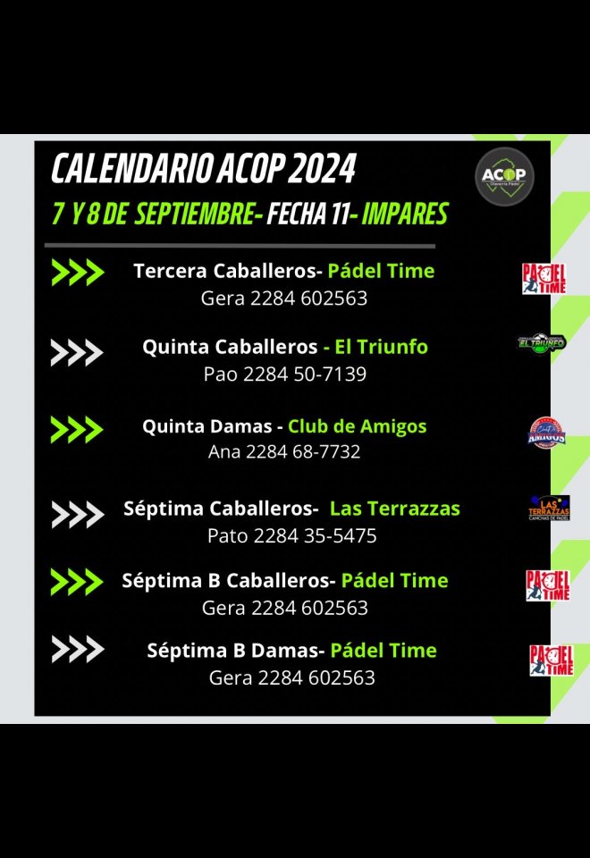 »» Evento: ACOP FECHA 11 IMPARES »» Localidad: Olavarría »» Fechas: 06/09/2024 al 08/09/2024