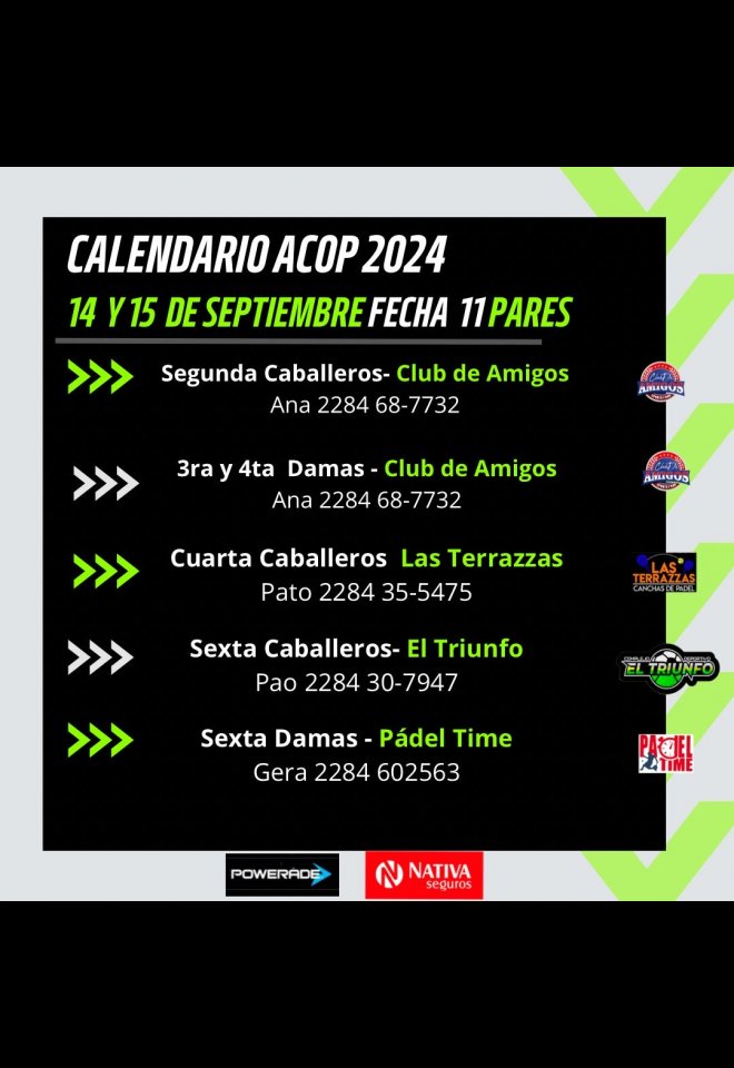 »» Evento: ACOP FECHA 11 PARES »» Localidad: Olavarría »» Fechas: 13/09/2024 al 15/09/2024