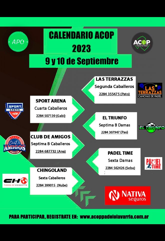 »» Evento: ACOP FECHA 10 PARES »» Localidad: Olavarría »» Fechas: 08/09/2023 al 10/09/2023